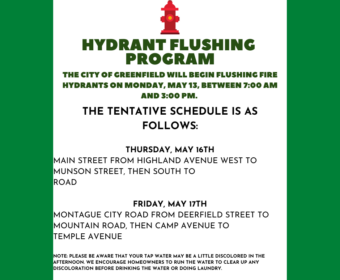 GREENFIELD, MA (FRANKLIN COUNTY NOW) — The Greenfield DPW will begin flushing water hydrants […]