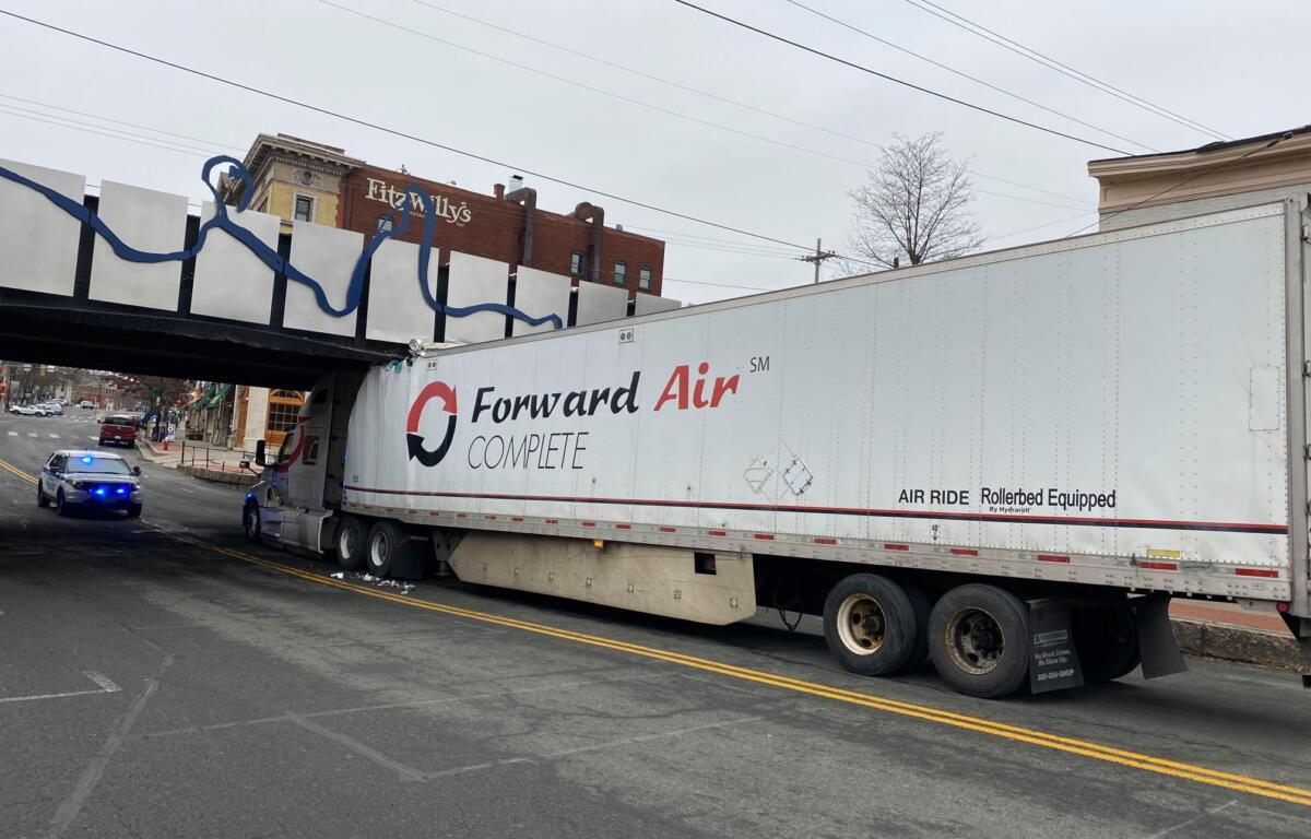 (Northampton, MA) A Forward Air big rig truck was not moving forward yesterday when it got stuck under the underpass on Bridge Street around 11:42am. The accident caused delays for about an hour in downtown Northampton.