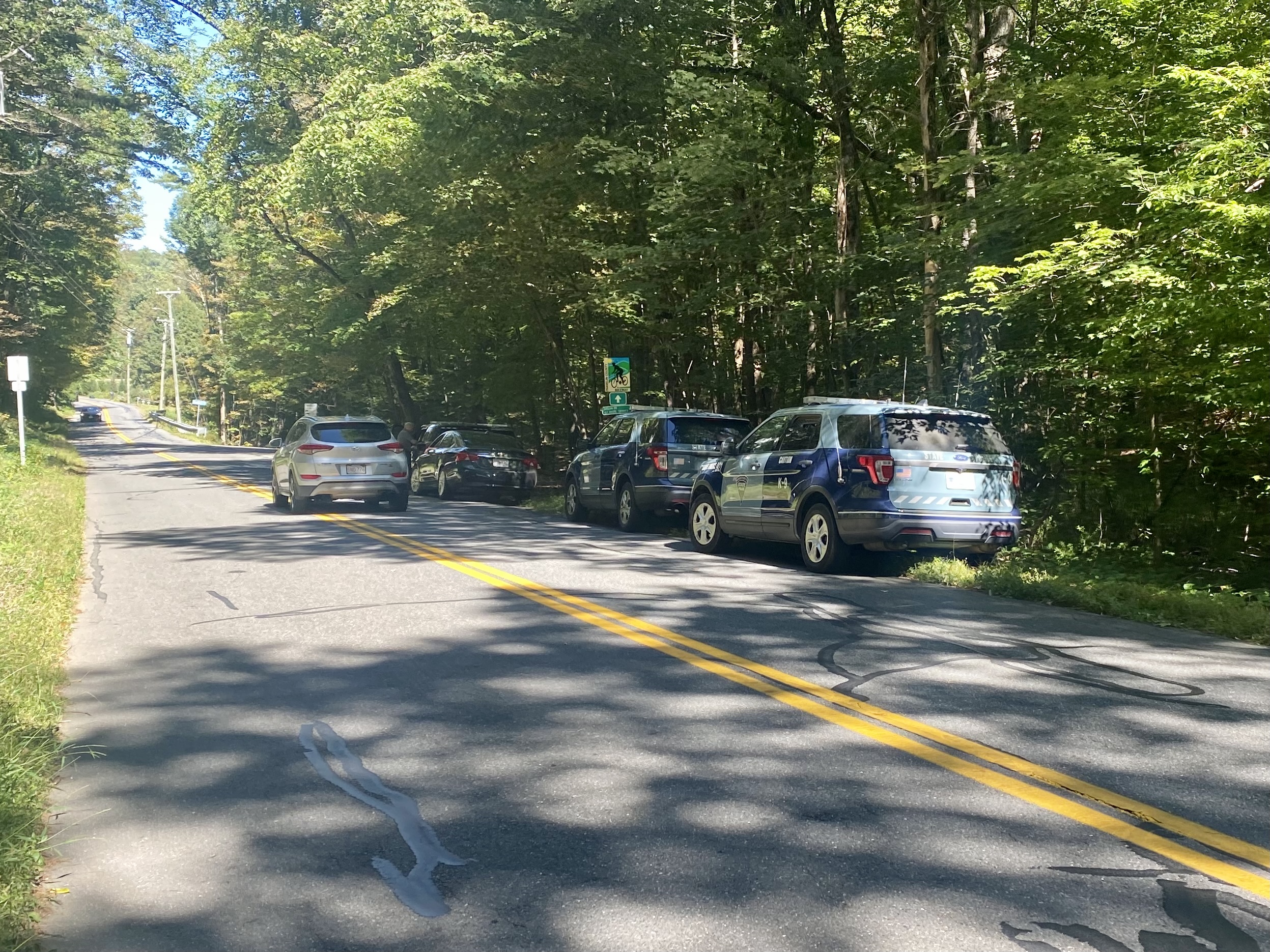 A car theft in Whately has become a three town incident. According to Gill Police Chief Christopher Redmond, Gill Police were dispatched to the area of Hoe Shop Road for a report of a brush fire in progress. Upon arrival, it was determined that the the fire was a fully engulfed box truck. The fire was quickly extinguished and an investigation revealed the car was stolen out of Whately in the early morning hours Tuesday. Gill Police were unable to locate a suspect, but Greenfield Police have been searching an area on Hoe Shop Road in Greenfield with K-9 units. According to Deputy Chief William Gordon, the search is connected to the incident in Gill.
