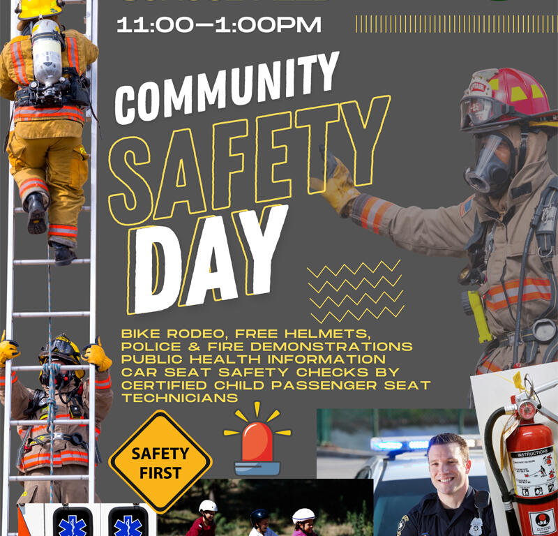 Community Safety Day reinforces important public health information. Certified technicians will be on location to ensure the correct placement of children’s passenger seats. In addition, informational areas will be present to amplify essential safety practices.