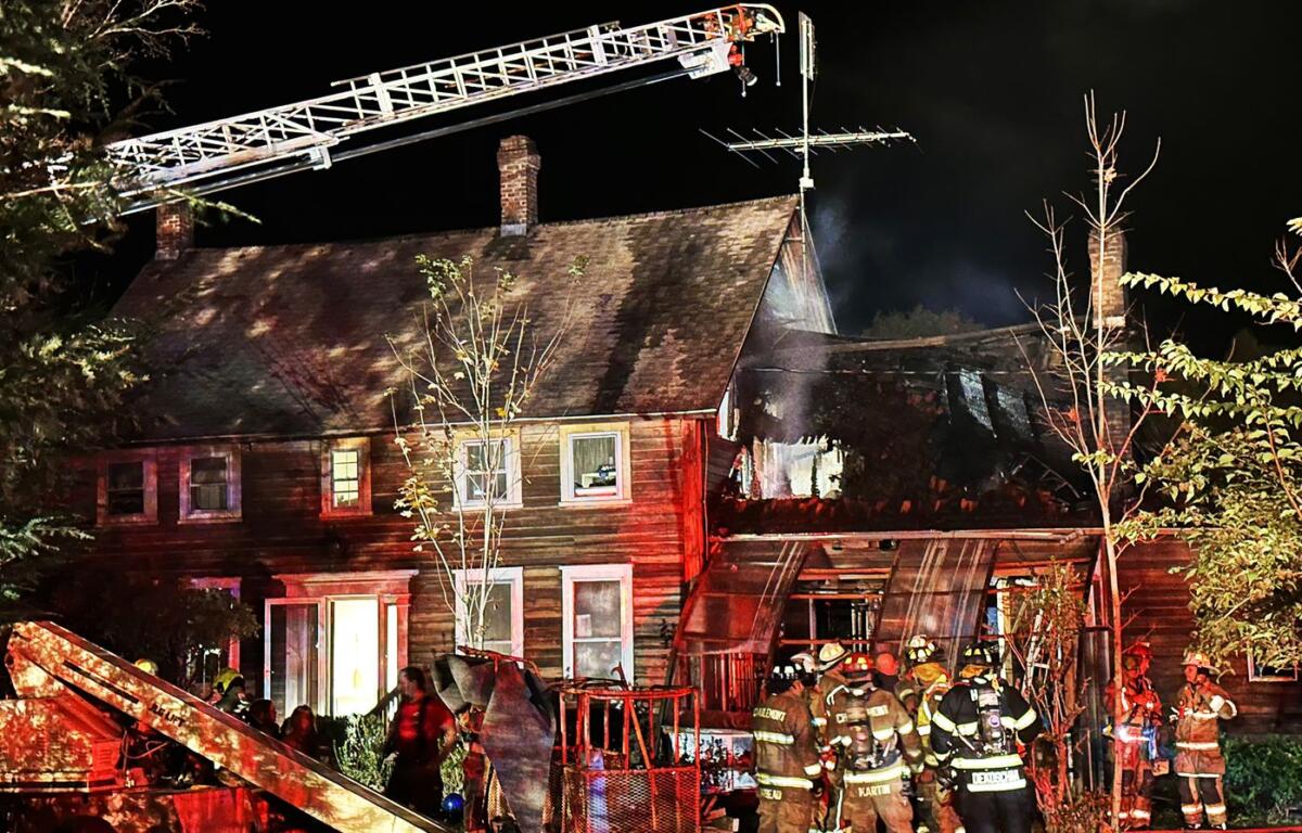 (Conway, MA) A two-alarm house fire broke out on Shelburne Falls Road in Conway Saturday night. While no one was injured and a kitten was rescued by a firefighter, the garage where the fire is believed to have started, was burned down and the adjacent section of the home sustained significant damage and most of the residents’ possessions were destroyed.