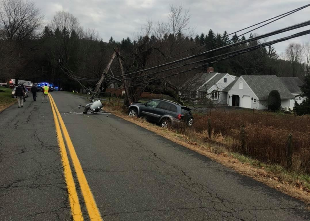 (Deerfield, MA) North Hillside Road in Deerfield was closed for 8-10 hours yesterday after a vehicle crashed into and broke a utility pole. The single car accident did not cause any injuries to the sole occupant and operator of the vehicle.