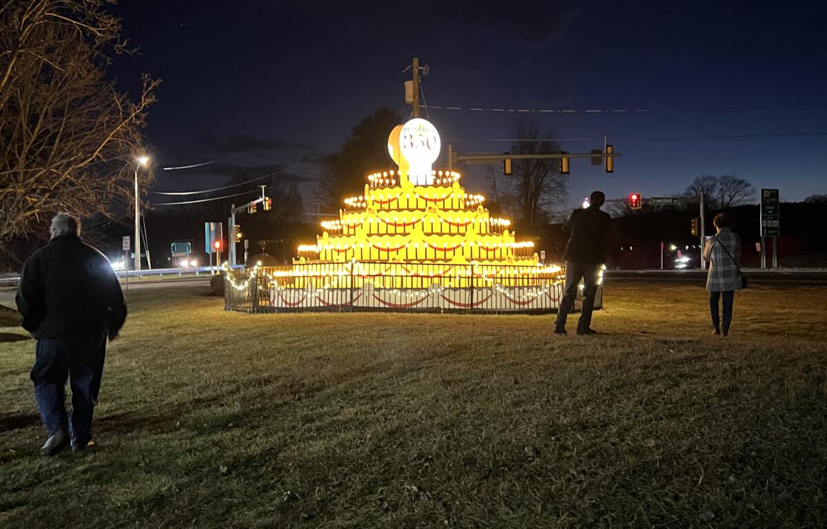 The festivities began with a jubilee at Deerfield Academy on New Year’s Eve with over 170 attendees and just after sunset on New Year’s Day was the lighting of the 350th Anniversary Cake outside of the South Deerfield Fire District on Routes 5&10. Prior to the lighting, a volunteer appreciation ceremony was held inside the fire station.