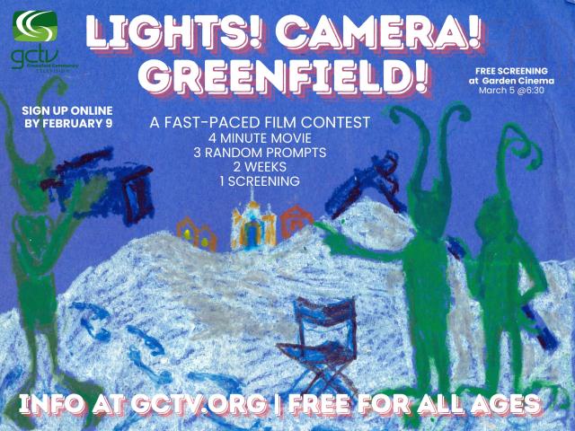 Lights! Camera! Greenfield!, the two-week film sprint and festival, kicks off on February 9. Teams can sign up now using the Google form at
