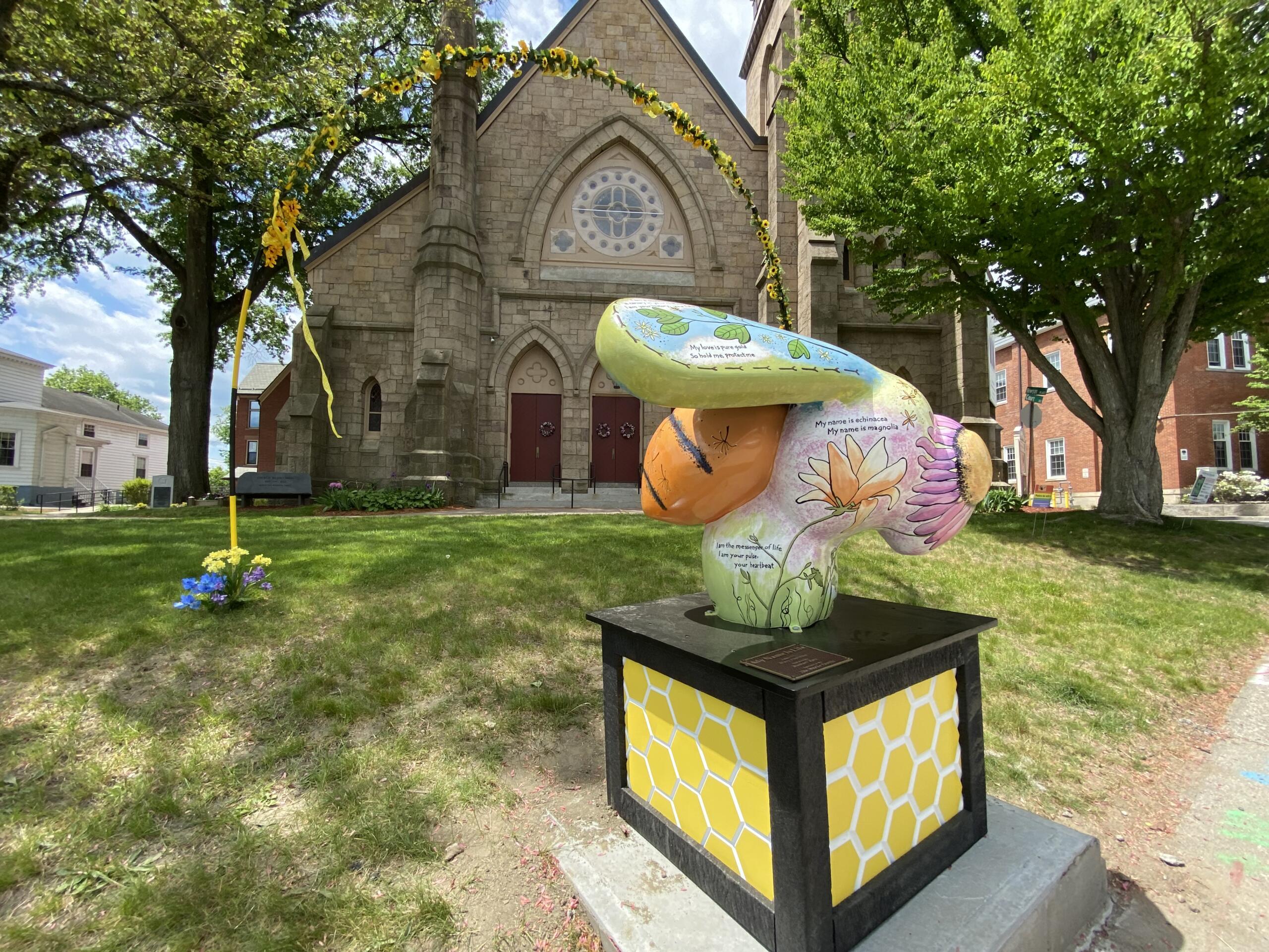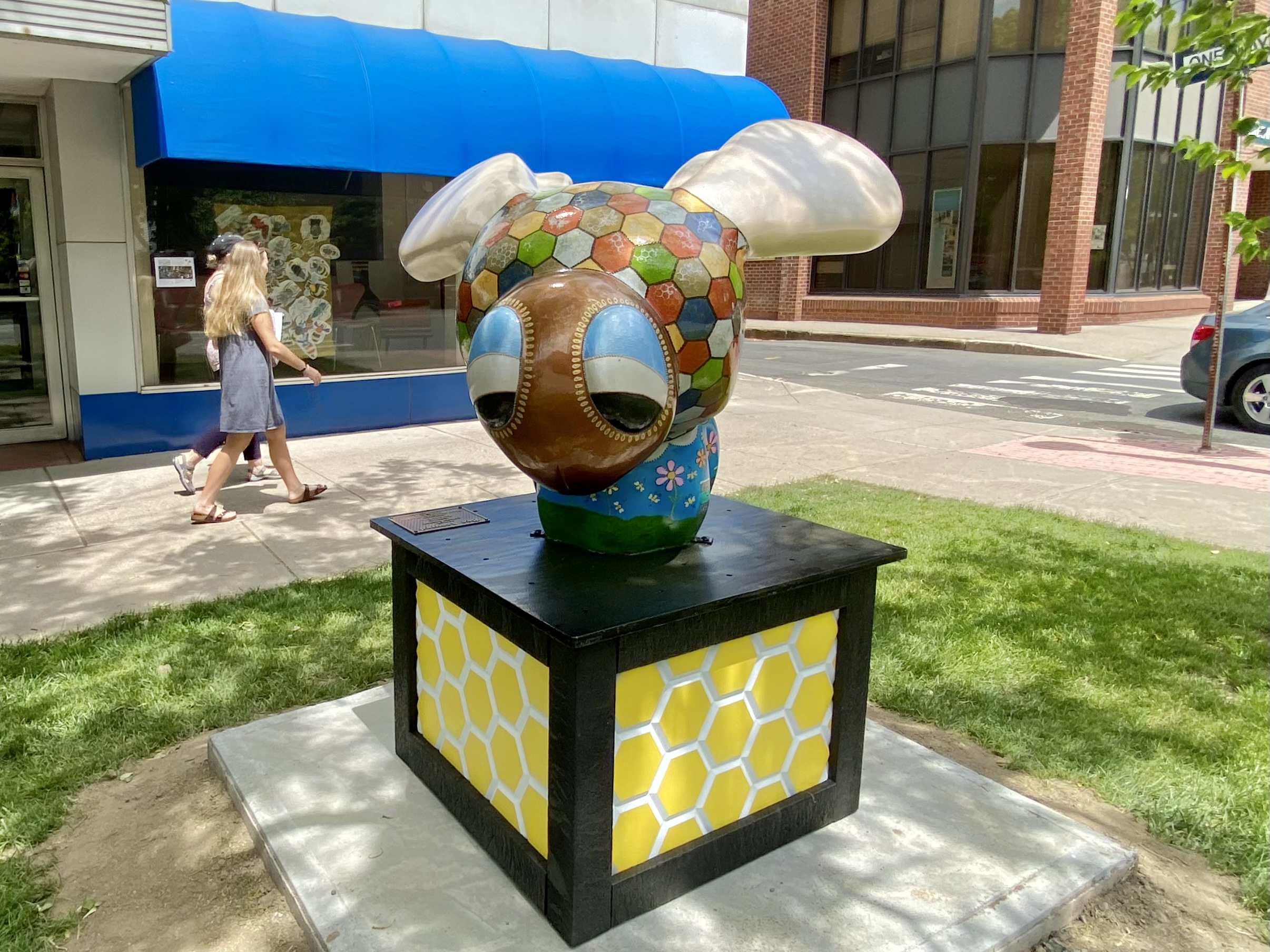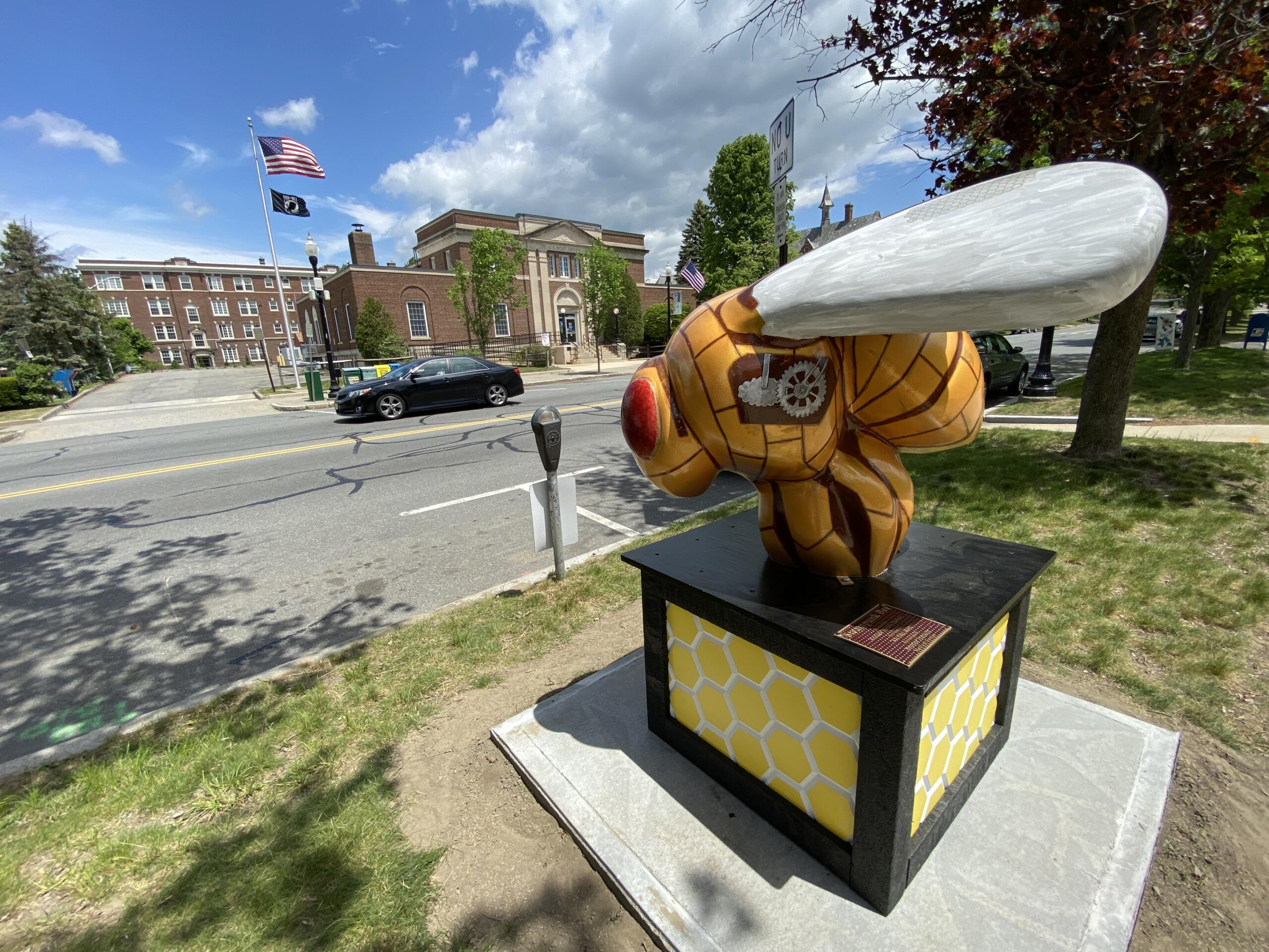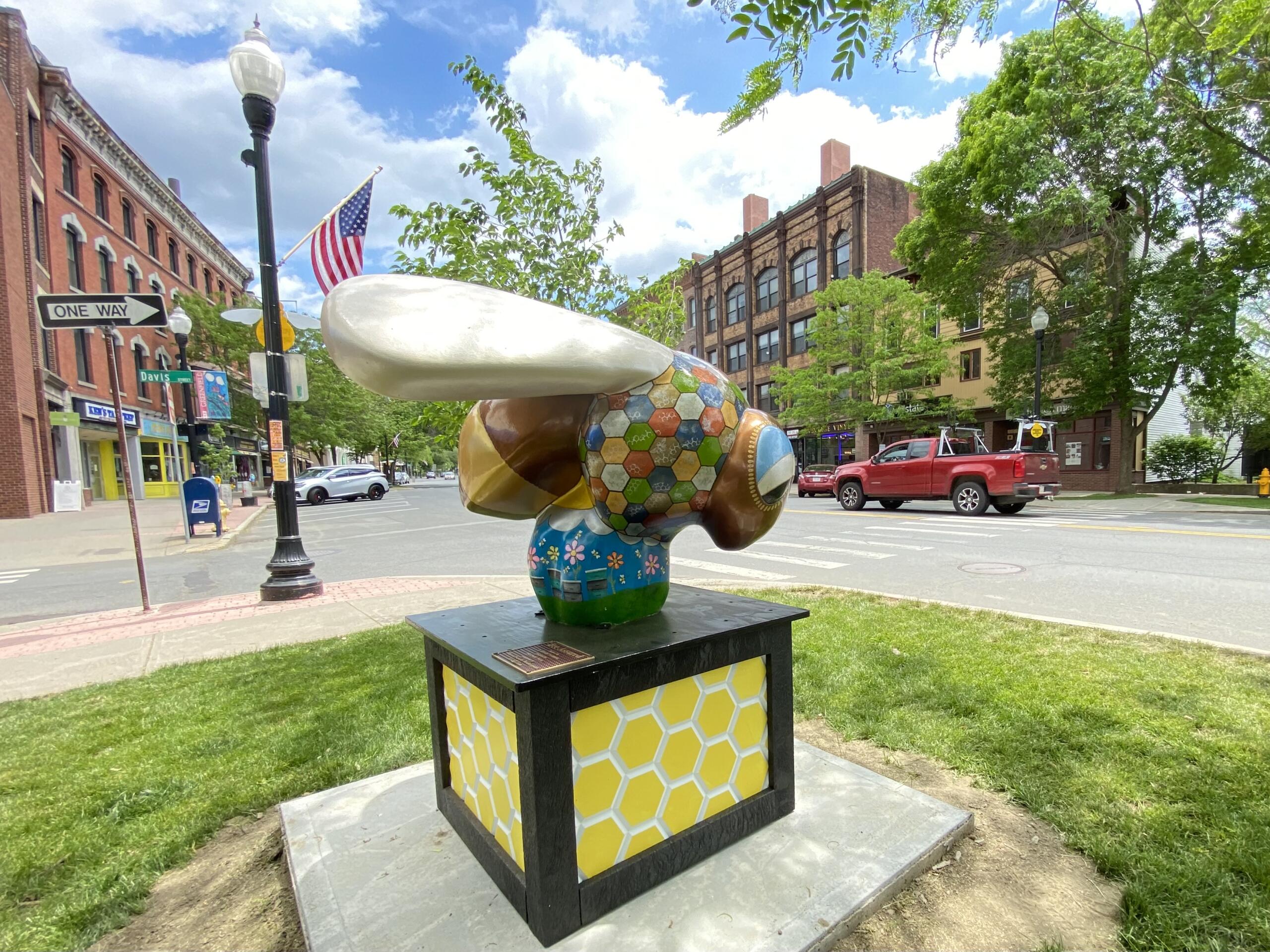 (Greenfield, MA) — “G-Town” turned into “Bee Town” this weekend. After a year’s hiatus, Greenfield held its annual “Bee Fest” in the downtown area, featuring a number of exhibits and events celebrating the winged insects which are largely responsible for helping pollinate our food supply. A new feature this year is the addition of six new bee sculptures located at various points up and down Main Street. All were officially unveiled during Saturday morning ceremonies and will remain as permanent structures downtown.
