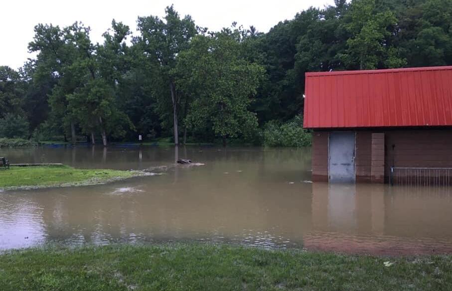 Nash’s Mill Road in Greenfield closed on Monday following flooding around the Greenfield Swimming and Recreation Area.