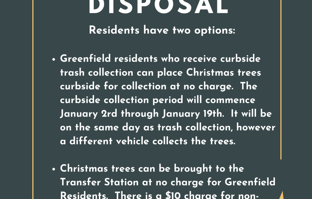 The Greenfield Department of Public Works announces options for Christmas Tree disposal.