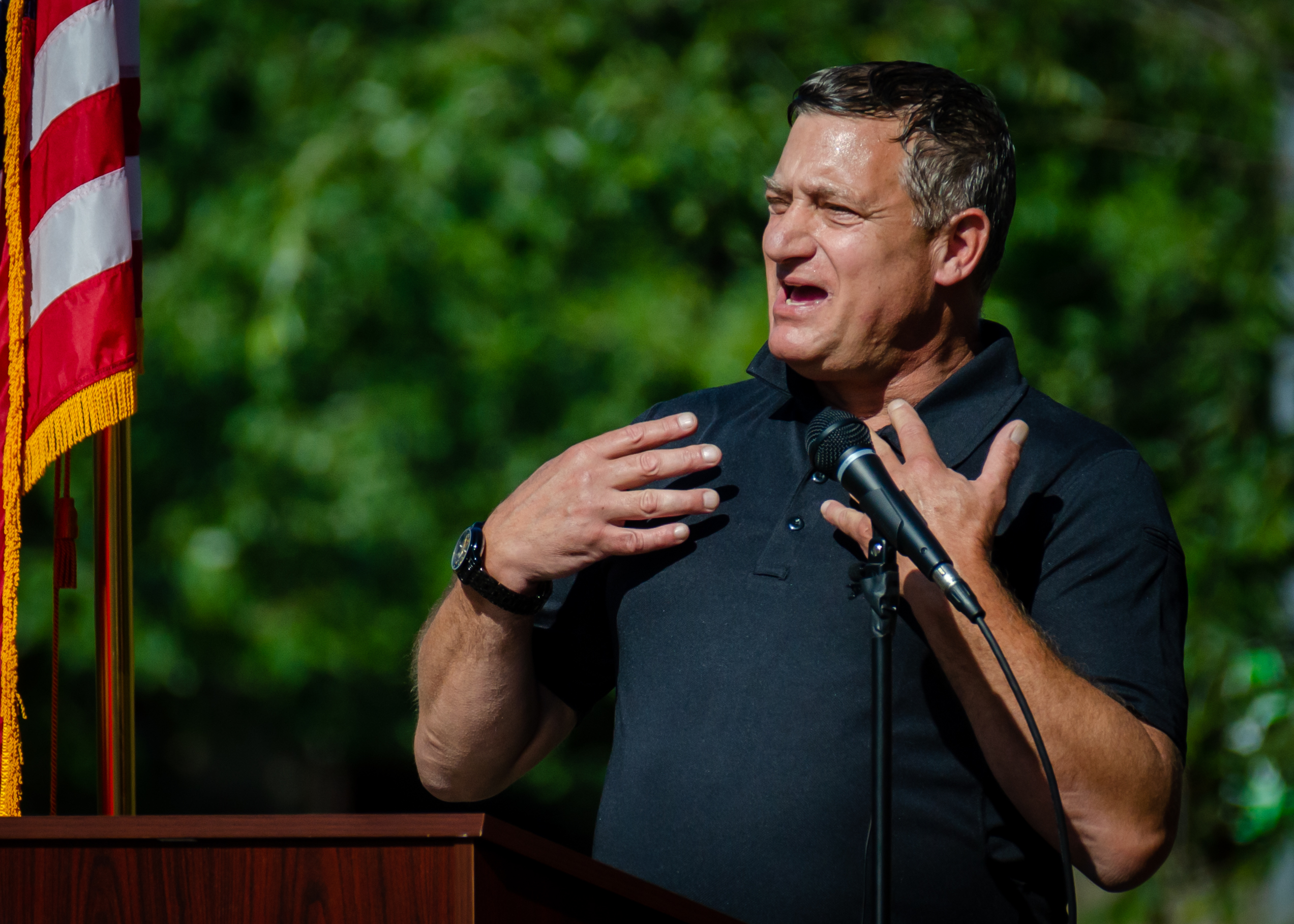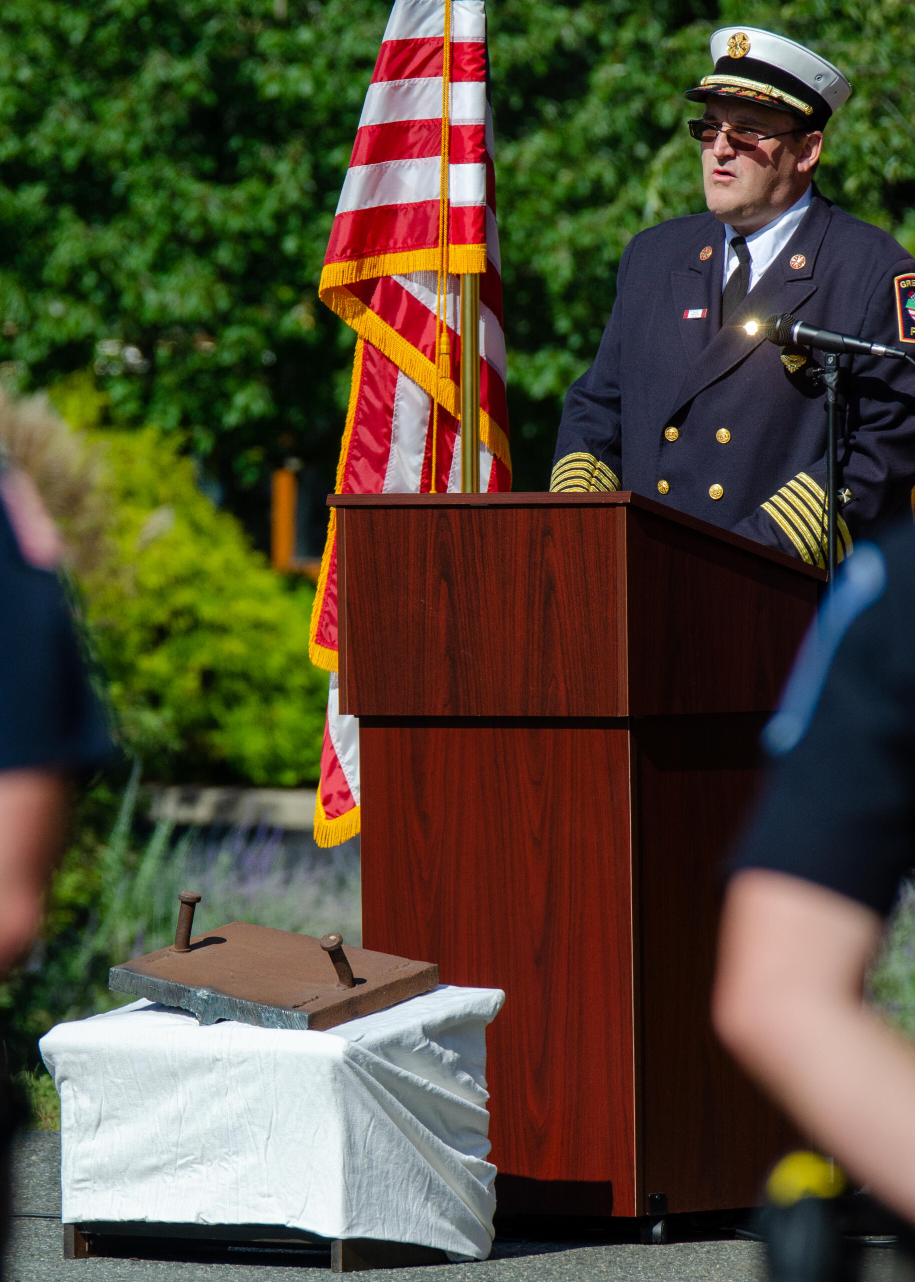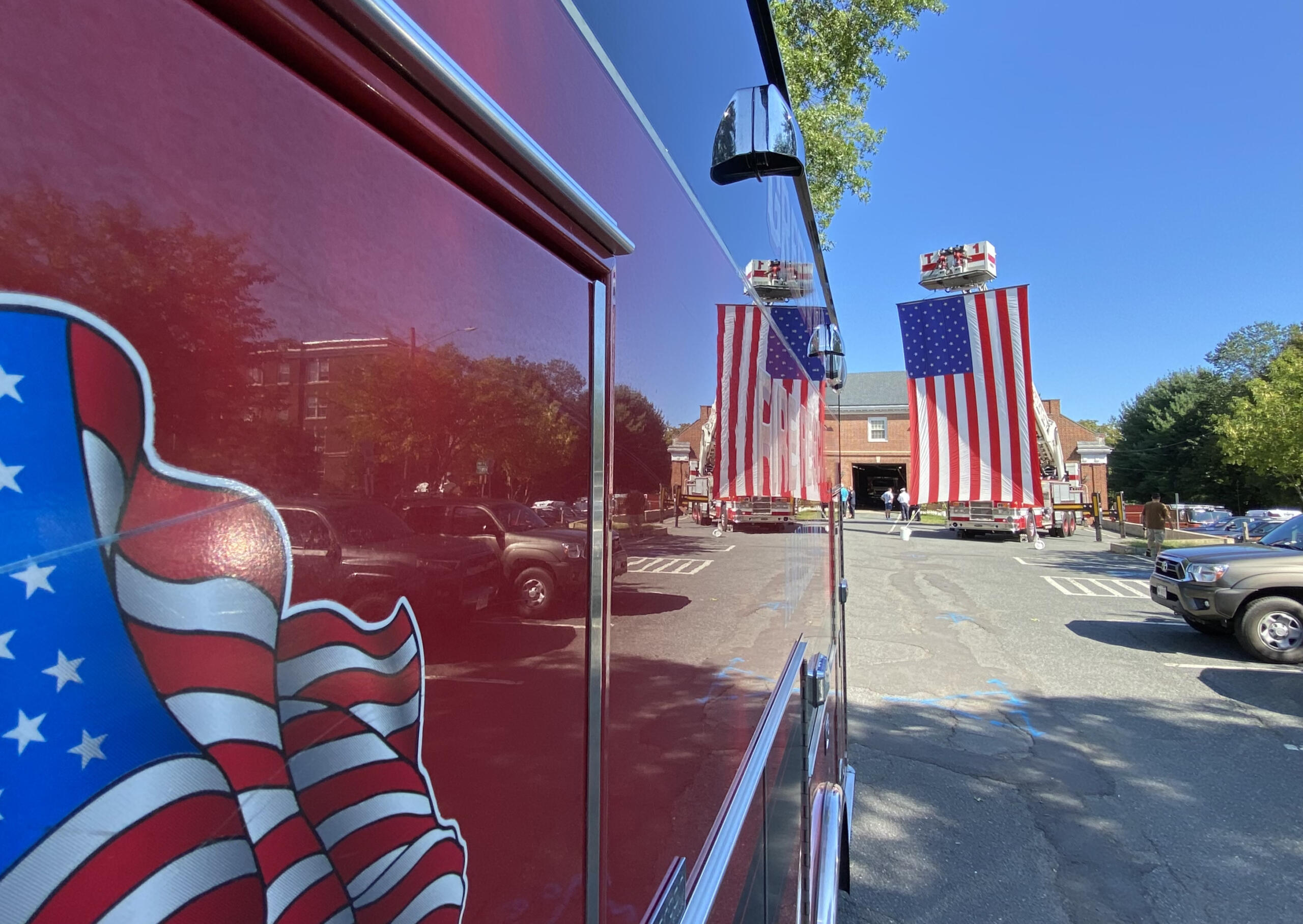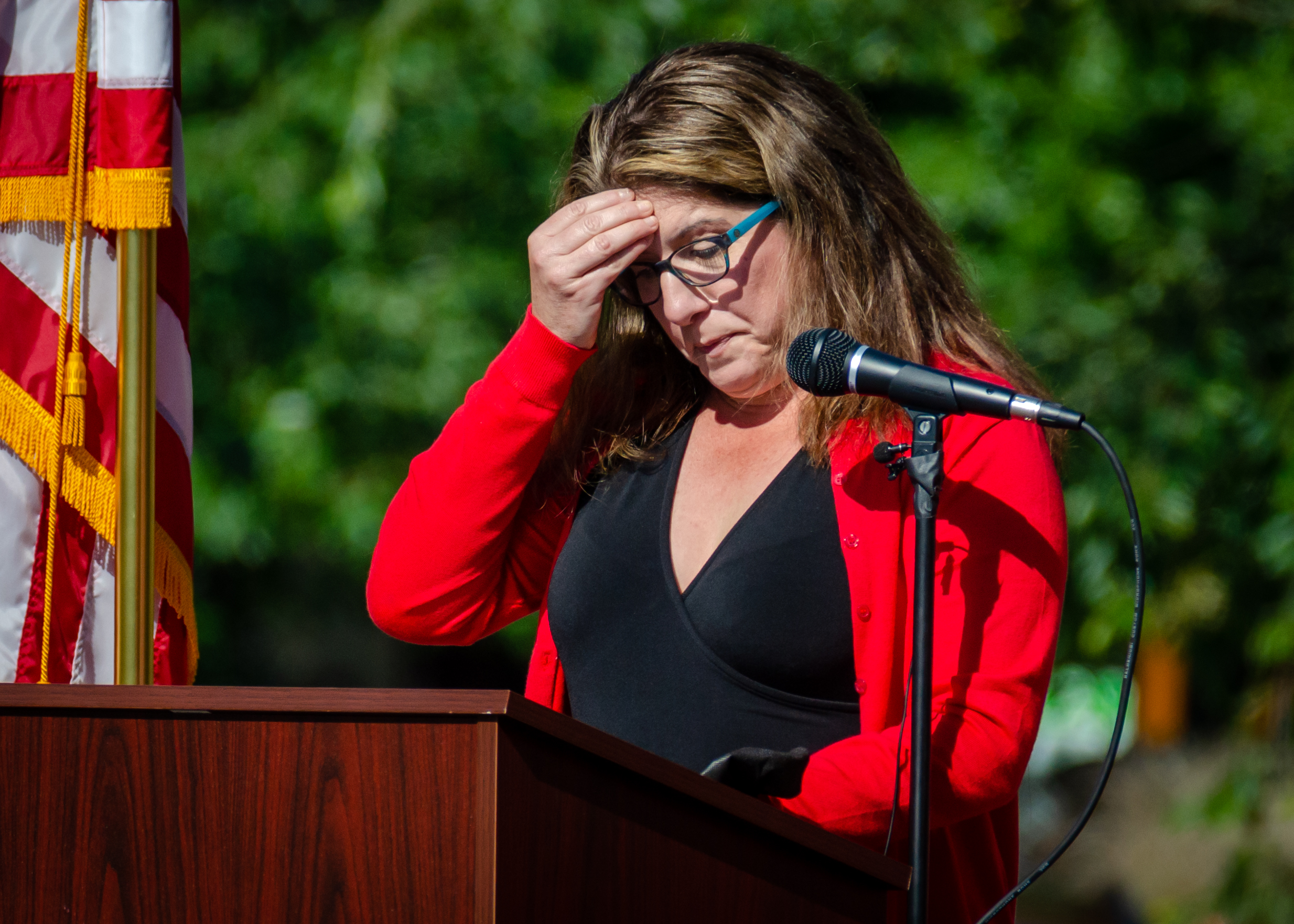 (Greenfield, MA) At 10am on September 11, 2021 members of the Greenfield community as well as Greenfield fire fighters and Greenfield police gathered to remember the events of September 11, 2001. The event included speakers from the Greenfield community as well as individuals who were working and living in New York City at the time of the attacks.