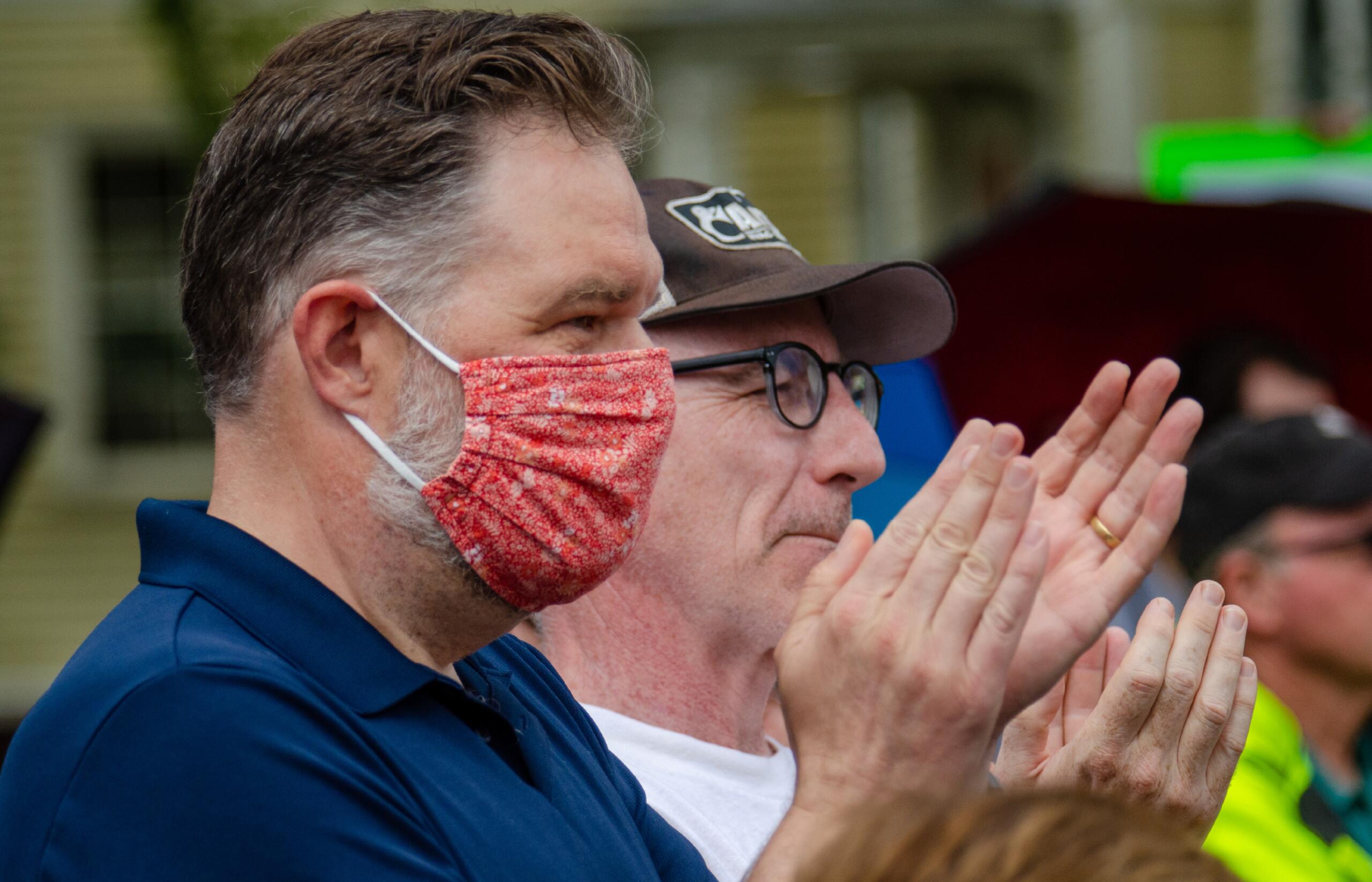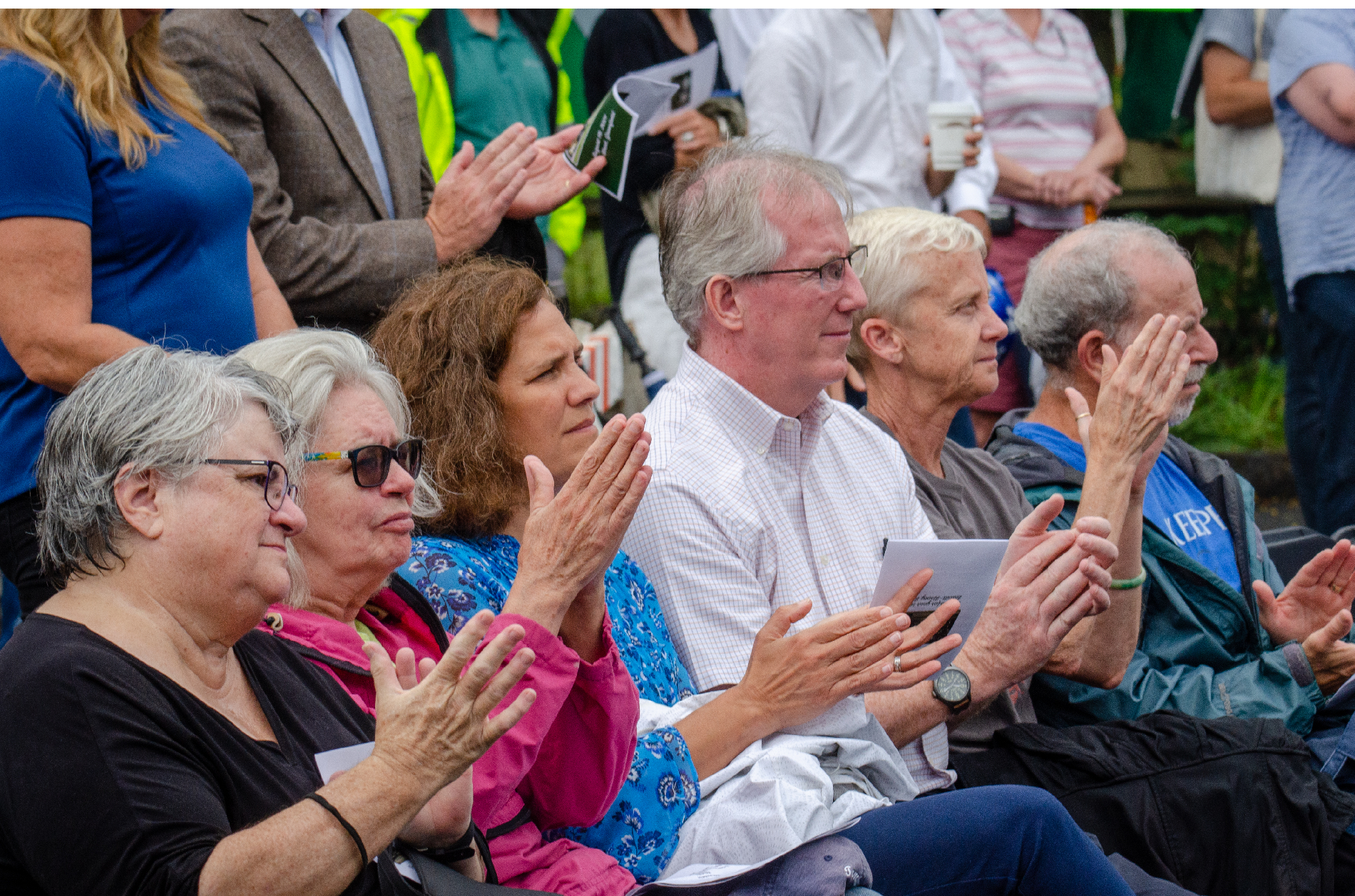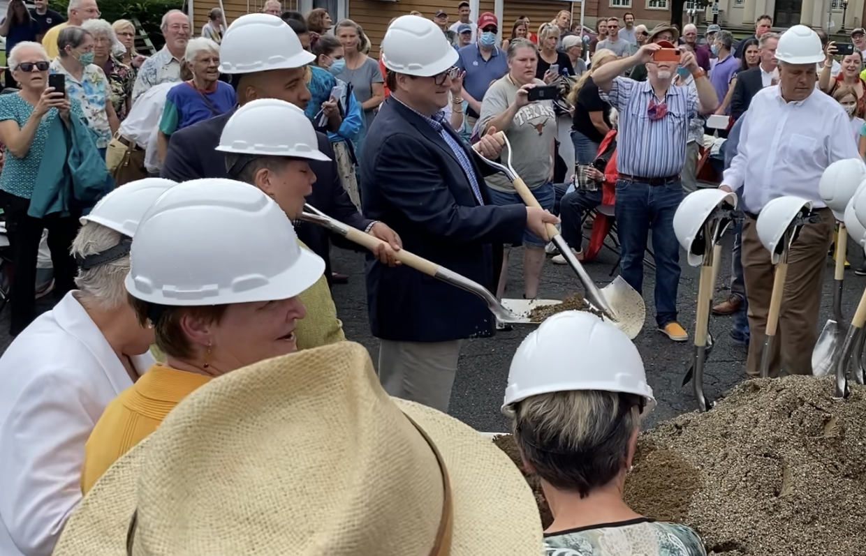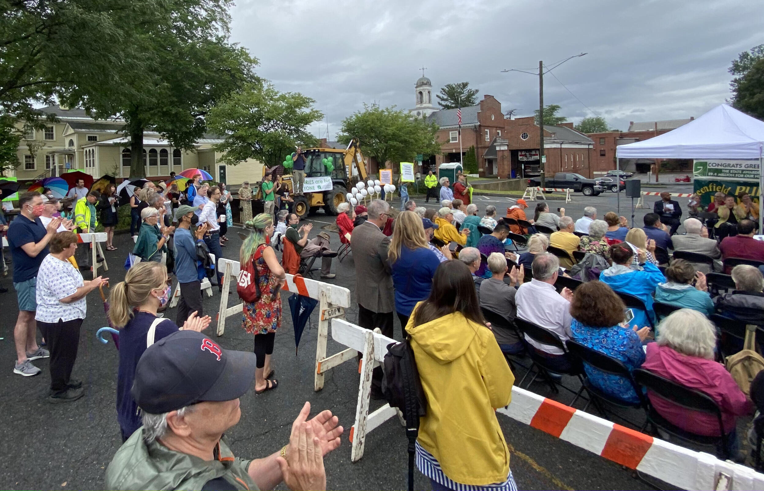 The 10am ceremony was held at 426 Main Street, the location of the new library, despite heavy rain from Tropical Storm Fred that subsided just before the event began.