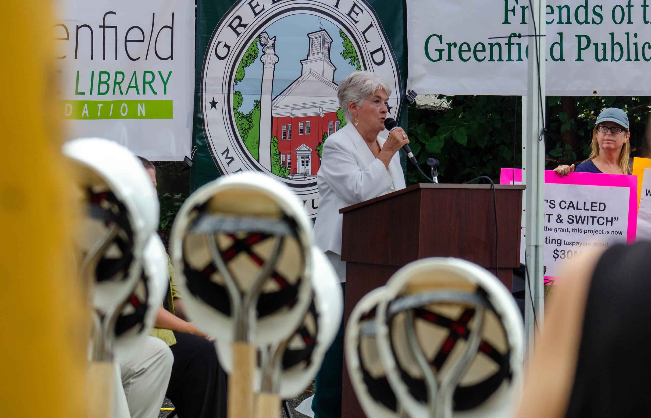 The event featured speeches by the mayor and other committee and board members including George Comeau, Massachusetts Board of Library Commissioners, Doris Cowdrey Greenfield Public Library Board of Trustees, Ed Berlin speaking on behalf of Tim Farrell, both of whom co-chair the Greenfield Public Library’s Building Committee, and Ellen Boyer, Greenfield Public Library Director.