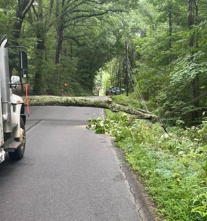(Leverettt, MA) North Leverett Road is currently closed due to a large tree that came down. Motorists should find an alternative route between Cave Hill Road and Richardson Road. Eversource is on scene to restore power to the area.