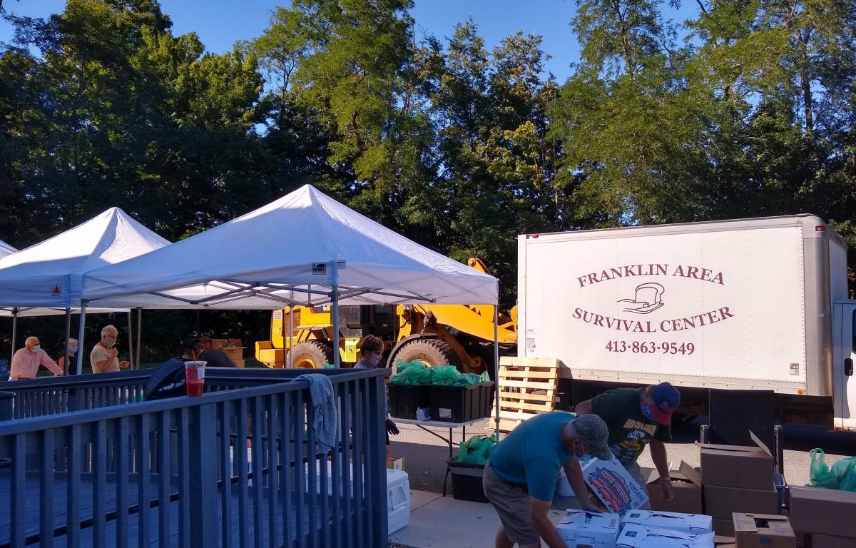 (Bernardston, MA) One-hundred large boxes of high quality food were successfully given away to the community at a “Pop Up Pantry” in Bernardston Wednesday. The event was coordinated by the Bernardston Senior Center along with the Council on Aging and volunteers from the Select Board, Highway Department, among others.