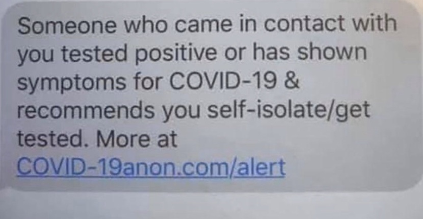 (Western MA) A new scam is circulating around the commonwealth. Police are warning about a text message that appears to warn about potential contact with a COVID positive individual. The text includes a link, and asks people to click on the link for more information. Police are warning residents to not click on the link. The Federal Trade Commissions warns against responding to texts, emails, or calls about checks from the government, online offers for vaccine and home test kits, robocalls, emails claiming to be CDC or WHO, and recommends doing research before making a donation. For more information click here.