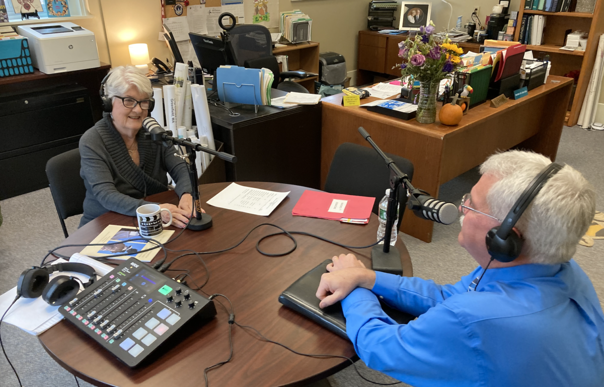 Photo Caption: Mayor Roxann Wedegartner and Public Works Director Marlo Warner record the first episode of the Mayor’s Roundtable Podcast at Greenfield City Hall, Monday, Oct. 24, 2022.