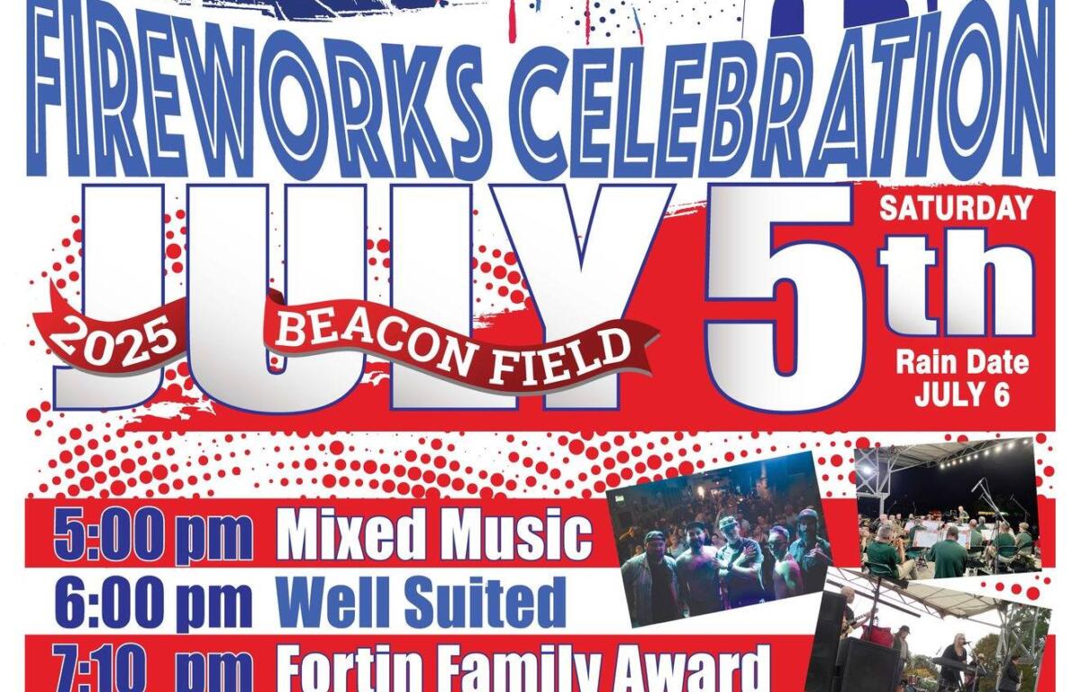 GREENFIELD – On Saturday, July 5, at Beacon Field, the Greenfield Recreation Department is hosting its annual Fireworks Celebration in recognition of Independence Day. The festivities begin at 5:00 p.m. and include various talented performers and skilled vendors. A rain date is currently scheduled for Sunday, July 6.