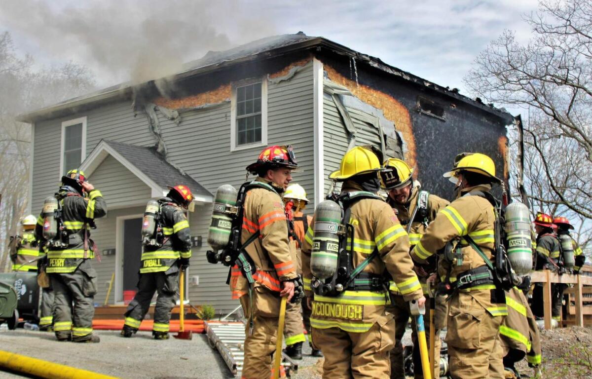(Orange, MA) Just before 1 p.m. on Saturday, a two-alarm structure fire broke out at 36 Summit Street in Orange in which one firefighter sustained minor injuries. All occupants of the building were accounted for without injury, although two families are displaced after the building was deemed a “total loss.”