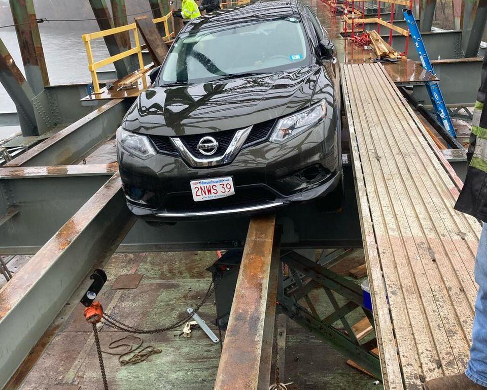 (Greenfield, MA) A car crashed onto the closed General Pierce Bridge early this morning. At 7:30 am Tuesday morning the Greenfield Police Department were called to the bridge on a report that a 2015 Nissan had crashed onto the bridge through the barricades that indicated the road was closed.
