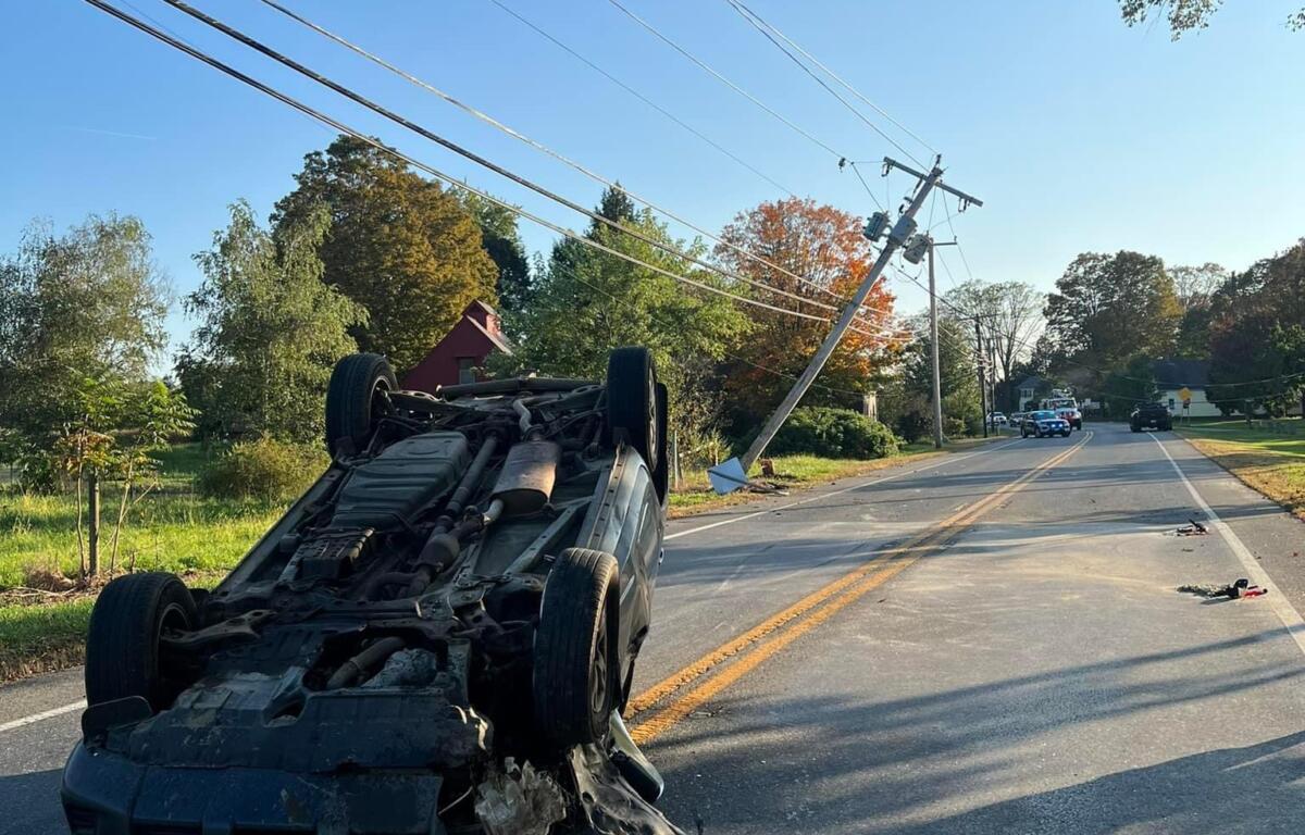 (Deerfield, MA) Route 5&10 in Deerfield was closed in the area of Wells Cross Road Sunday evening after a vehicle struck a utility pole and rolled over. The driver sustained minor injuries and refused treatment. The road remained closed for several hours to complete repairs on the utility pole.