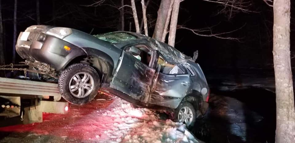 (Colrain, MA) Injuries have been reported resulting from car accident in Colrain Sunday night. Around 8pm the Colrain Fire Department along with the State Police responded to a report of an accident on South Green River Road. The vehicle hit a tree and ended up in the river.