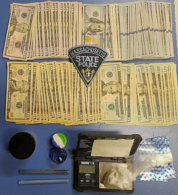 The Troopers observed that vehicle being operated on I-91 northbound in Greenfield at an estimated speed of 90 miles per hour in a 65 mile per hour zone. They were able to catch up to it, then immediately activated the cruiser’s blue lights and stopped the vehicle. Once the vehicle stopped, the Troopers approached it, and confirmed that the operator, identified as Deven Barrette, 33, of Sheldon, Vt., was indeed the same individual that was criminally charged and released at the prior interaction. Barrette was placed under arrest and searched prior to being placed in the rear of the cruiser. Troopers located a device containing suspected Crack Cocaine and a large round package containing approximately 50 grams of suspected Heroin. At this point Troopers began a search of the vehicle and located a bag containing items commonly used in the packaging and sale of illegal narcotics as well as a large amount of US Currency, suspected to be the proceeds of the sale of illegal narcotics.