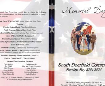 SOUTH DEERFIELD, MA (FRANKLIN COUNTY NOW) — South Deerfield’s Memorial Day parade will kickoff […]